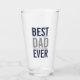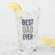This glass features phrase "Best Dad Ever" in navy blue and grey modern bold sans serif font style.
