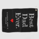 Minimal and modern “Best Dad Ever“ with hand drawn serif typography with a red heart in the centre and personalised names at the bottom.