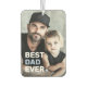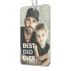 Car air freshener featuring your custom photo and the text "Best dad ever" as a white and light blue overlay in the bottom left corner.