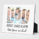 This father's gift plaque features three photos in the shape of the letters "DAD" along with the inscription "Best Dad Ever."