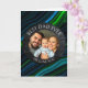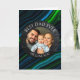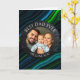 A sentimental photo card. A Father's Day card that you can upload your favourite photo to, along with text, "Best Dad Ever" and "we love you so much." Blue and green abstract background.