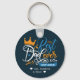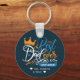 Modern typography Father's Day keychain features typography script ''best dad ever'' in white, blue and orange in trendy lettering and a name. Perfect gift for your dad for happy father's day, birthday etc.