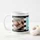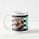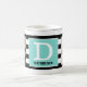 Happy Father's Day! Modern Best Dad Ever Coffee Mug. With Black and White Stripes and a personalised Robin's Egg Blue Monogram. Add 2 Photos!