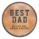 Best Dad Orange Metallic Father`s Day Keepsake Hockey Puck. Best dad saying and names is on a print of an orange metallic texture. A great keepsake for a dad or a grandfather for Father`s day or birthday.
