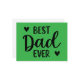 A minimalist graphic featuring the words "Best Dad Ever" on a green background, adorned with simple hearts. Modern, clear typography emphasizes the positive and emotional message. Perfect for a card, poster, or gift for Father's Day.