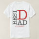 Don't wait for Father's Day to celebrate your dad. All year long, there are multiple occasions to express your love to him. So, here is a one-of-a-kind "Best Dad" design in red and black glitter colours for a white men's t-shirt. We used a very trendy font for this text, placed "BEST" vertically, and used a big red "D" for dad. You will find a customisable name at the bottom written in a modern dotted red font. Please, replace the default name with the one you wish, or feel free to delete it.