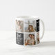Create a custom photo coffee mug for Daddy featuring 7 pictures of your choice displayed in a square grid template layout, three coloured cubed areas for you to add your own text. The first cube reads 'Happy Father's Day'. The second cube reads 'Best Daddy Ever' in a combinaton of script and trendy typography and a cute little white heart. The third box reads 'We Love You', name/s and year. Cubes can be changed to any colour by clicking on the customise further option. Simply personalise by adding celebration, message, name/s and year to make an extra special keepsake gift. Perfect for birthdays, father's day or any other special occasion!