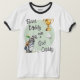 A modern t-shirt with golfing theme and caption 'Best Daddy with a Golf Caddy. The design shows a trophy, a golf ball, and a golf caddy with clubs. Ideal for the Dad who loves golf, the top makes an ideal gift for Father's Day or Dad's birthday.