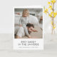 Simple, stylish custom photo "Best Daddy in the Universe" Happy Father's Day card with modern minimalist typography and a simple white border. The photo and text can easily be personalised for a design as unique as your special Dad! The image shown is for illustration purposes only to be replaced with your own photo. The placeholder image is of a young dad with his little daughter sitting on his shoulders on a rustic rug in a scandi minimalist designed bedroom. They are playing and having fun.