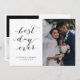 Fun wedding thank you photo cards, featuring the phrase "best day ever" in black modern calligraphy style font on the left half and your favourite wedding portrait on the right. Personalise with your names and wedding date. On the reverse are 2 additional photos and a personalised message.
