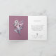 Elegant and simple mauve purple typography, wedding photo thank you card. Front of card features single photo and two lines for custom text. Inside of card features pretty watercolor bouquet of dusty blue and mauve flowers and foliage on mauve wine colour panel with custom message.
