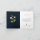 Elegant and simple navy blue typography, wedding photo thank you card. Front of card features single photo and two lines for custom text. Inside of card features pretty watercolor floral stem on navy blue colour panel with custom message.