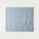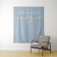 Elegant, modern, minimalist dusty blue Best Day Ever wedding backdrop with gold rope heart.
