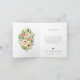 Elegant and simple typography, wedding photo thank you card. Front of card features single photo and two lines for custom text. Inside of card features pretty peach and orange watercolor floral bouquet with custom message.