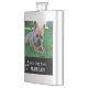 The product is a good size and came exactly as it was pictured. The lid is not attached to the flask, which could be dangerous on drunken nights... The print came out surprisingly well and looks very sharp. Would definitely recommend.
