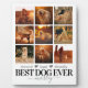 Personalised pet photo plaque featuring a stylish white background that can be changed to any colour, a 9 picture collage of your dog, character words that represent your animal, the saying "best dog ever", and their name.
