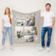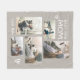 A thoughtful gift idea for dog Mum's, this custom personalised blanket says "Best Dog Mum" in trendy modern typefaces along with a 5 photo collage of the pet dog. A stylishly arrange collage that includes 5 of your chosen photos makes a wonderful keepsake to treasure through the years. Handdrawn doodle hearts accent the design to add an affectionate touch. The background colour shown here is a lovely neutral beige. The name Mum can be customised with any other name of the recipient.Give her a cosy gift she will love and cherish for years to come. Design a personalised photo blanket so she can relive precious memories with her cherished pet. Upload your digital photos to customise a gift she will truly treasure.