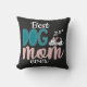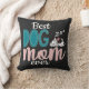 This cute pillow features a lovely sleeping spotted puppy with the wording "Best dog mum ever" in teal, black, and pink modern fonts.