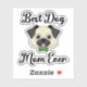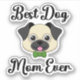 An illustration of a cute pug dog with typography best dog mum ever for mother's day. This simple cartoon design is for pet lovers.