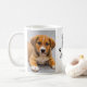 This personalised photo mug features two portrait-shaped photo spaces and custom "Best Dog Mum" wording with heart and name(s) of the puppy dog in black, white, and red colours with paw prints and heart accent - which can be completely modified. Makes a thoughtful and sweet Mother's Day keepsake gift for dog loving furbaby moms.