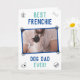 Frenchies, show your Dad some love this Father’s day with a personalized card just from you. Upload a photo taken of yourself or with your human (4 x 5 inch ratio will work best). Message on the front of the card reads "Best Frenchie dog Dad ever." Inside message reads “I love you more than walkies, Happy Father’s Day.” The design features hand-drawn illustrations of a dog house, bone, dog bowl and dog paws. Font and colors and be changed.