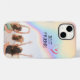 Photo Best friends, siblings, besties, Modern Colourful Abstract Holographic Iridescent Glitter Rainbow colours Shimmering Watercolor background. Personalise this beautiful iPhone Case with your own text and photo.