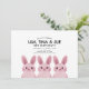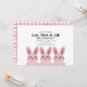 Cute bunny theme for a Best Friends or triplets birthday party invitation featuring three pink baby rabbits. Back with chequered pattern.