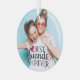 Modern BFF photo ornament featuring a trendy Best Friends Forever overlay in dark grey modern lettering decorated with a cute pink heart.