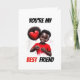 An adorable african american boy smiling broadly is wearing a red tee and is holding a red heart shaped balloon set against a black and white background that has the words "you're my best friend" in bold black and red lettering. This is ideal for best friends wanting to express how they feel about each other, for kids wanting to say a cute "Happy Valentine's day" to a classmate or for friends saying "Happy birthday" to each other. They are suited to both kids and adults. Personalise the inside which is blank with your custom message.