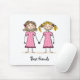 Two cute little stick figure girls in pink dresses holding hands. Text: Best friends.