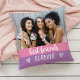 This trendy and stylish pillow features two photos of you and your best friends, with modern colour blocks in pink and lavender purple with white handwritten script typography and cute scribbled hearts.