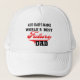 Team style and baseball style orange and black text World's Best Future Dad T-shirts, hoodies, mugs, cards, stickers, keychains, and other future dad apparel and gifts. You can easily add the future dad's name to this customisable hat!