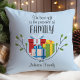 Ring in the holiday season with this charming, customisable holiday throw pillow that features an illustration of colourfully wrapped Christmas gifts, holly leaves, delicate falling snow, a heartwarming message rendered in elegant script typography that says, “The Best Gift is the Presence of Family,” customisable text, and the current year. Personalise this design by adding a family name to create a unique keepsake that’s perfect for displaying in your home or gifting to loved ones. This delightful pillow will add a touch of warmth and holiday spirit to any space, making it a cherished part of anyone’s Christmas decor.