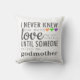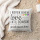 This cute design says "I never knew how much love my heart could hold until someone called me godmother." in a black or grey font with colourful hearts. You godmother will love knowing he's your awesome!