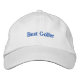Hat shown in white with blue embroidered text: Best Golfer. Customise this item or buy as is.