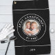 Creating your own golf towel is easy with our user-friendly template. All you need to do is upload your best photo and enter your initials, name, or any text you want. You can also customise the colours of the text and the background to match your grandfather's style. The photo and the text are printed in white with two circular white borders, creating a striking contrast with the classic black background.