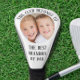 A fun golf club head cover for a golfer grandmother featuring "This Club Belongs to the Best Grandma By Par" in classic serif typography and a photo of her grandchildren.