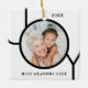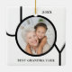 This modern Best Grandma Ever Christmas Photo Ornament is decorated with the word JOY in black on a white background.