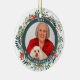 This Best Grandma Ever" photo elegant Christmas ornament for grandma features your sentiment and her own photo flanked with hearts inside an elegant and festive watercolor Christmas floral. Back of this 2-photo 2-sided ornament features the sentiment "We love you, Grandma!" and this can be changed to your own text. Start a new yearly tradition to create your family's own personal keepsake ornament each Christmas. A wonderful gift to give to any grandmother or great grandmother.