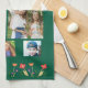 Cute Best Grandma Flowers 5 Photo Collage Keepsake kitchen towel. Hand-drawn flowers in beautiful spring colours and 5 photos on a green background. Create your own personalised gift for a grandmother for Mother`s Day, birthday or Christmas and add your names and photos.