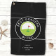 Best Grandpa By Par | Fun Father's Day Golf Towel This funny, custom golf towel features vibrant golf greens with a red flag, bordered by curved text that reads "Best Grandpa By Par" in a sleek, modern white font. Personalise it with a monogrammed name, initials, or custom text in matching white for an extra special touch. The solid black background makes the design pop, ensuring your grandfather stands out on the course.