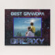 Intriguing cosmic celestial theme Jigsaw Puzzle in astral blues, featuring prominent faux blue glitter space age typography "GALAXY", along with pale blue inspirational "Best grandpa" text which you can easily customise. Placeholder photo can be personalised with your own image. A stunning & unique design for the family to assemble, & a great gift for grandfathers who are fascinated with realms beyond our world.