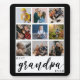 Modern, elegant photo collage mouse pad features 9 family photos, typography script ''best grandpa ever'' in trendy handwritten and block lettering on a white background. Perfect as a gift for grandfather for fathers day, birthday , Christmas or as a keepsake.