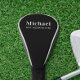 An elegant black golf head cover for a golfer husband featuring his name monogrammed in classic white serif typography and "Best Husband Ever" in simple modern white typography.