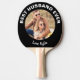 Give the best husband ever a fun gift with this custom photo black ping pong paddle with white text. Easily personalise with your favourite photograph (crop if necessary to a square with the subjects in the middle before uploading for best result). You can personalise "Best Husband Ever" to something similar in length such as "World's Best Husband," and on the bottom you can add your name or other text.