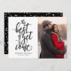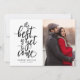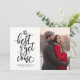 This New Year holiday photo card features the phrase "the best is yet to come" in black on a white background with your custom greeting below it. Your photo is displayed to the right. The back is a black and white pattern.