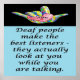Deaf people do make the best listeners. Their eyes are on you, gleaning every sign, every facial expression, every bit of body language. What you say - and how you say it - is important. Hearing people could learn a thing or two about communicating.