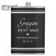 Best Man Custom Personalised Name Wedding Party Flask features the Best Man's name with the bridal couple's names and wedding date accented with a small love heart. Custom made for the Best Man. Designed by ©2024 Evco Studio www.zazzle.com/store/evcostudio
