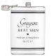 Best Man Custom Personalised Name Wedding Party Flask features the Best Man's name with the bridal couple's names and wedding date accented with a small love heart. Custom made for the Best Man. Designed by ©2024 Evco Studio www.zazzle.com/store/evcostudio