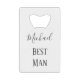 A memorable wedding keepsake for your Best Man, this bottle opener features his name written in dark grey cursive font with"Best Man" written directly underneath in bold print font. The background is white. Customise yours today!